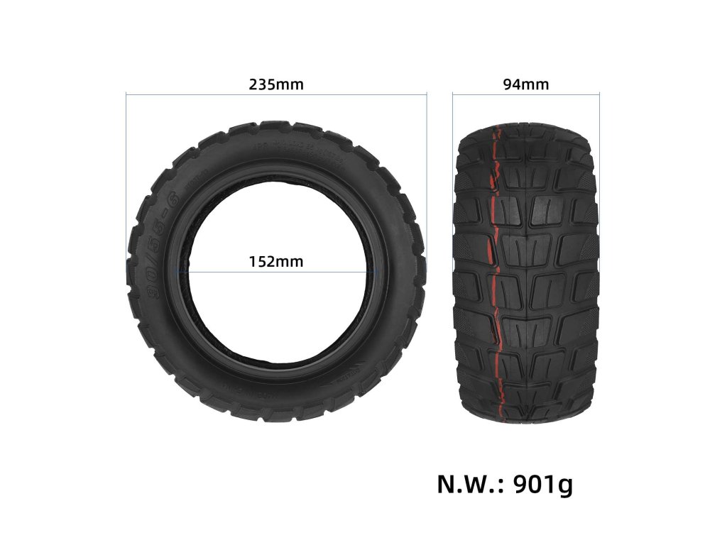 Rozměr 90/55-6 odpovídá 10palcové pneumatice, která je navržena tak, aby přesně seděla na originální ráfek elektrické koloběžky Kukirin M5 Pro. Pneumatika zajišťuje optimální kontakt s vozovkou a stabilní jízdní vlastnosti.