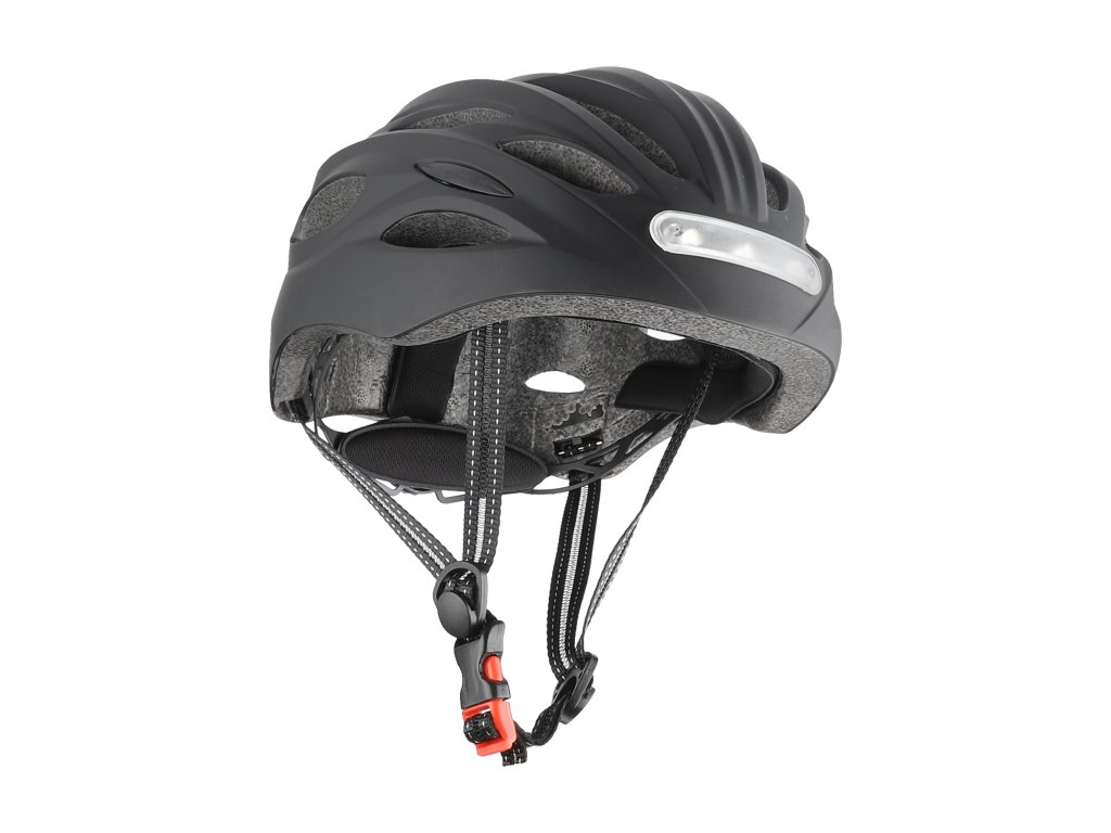 Černá cyklistická přilba L s předním a zadním LED světlem – nastavitelná pro dospělé