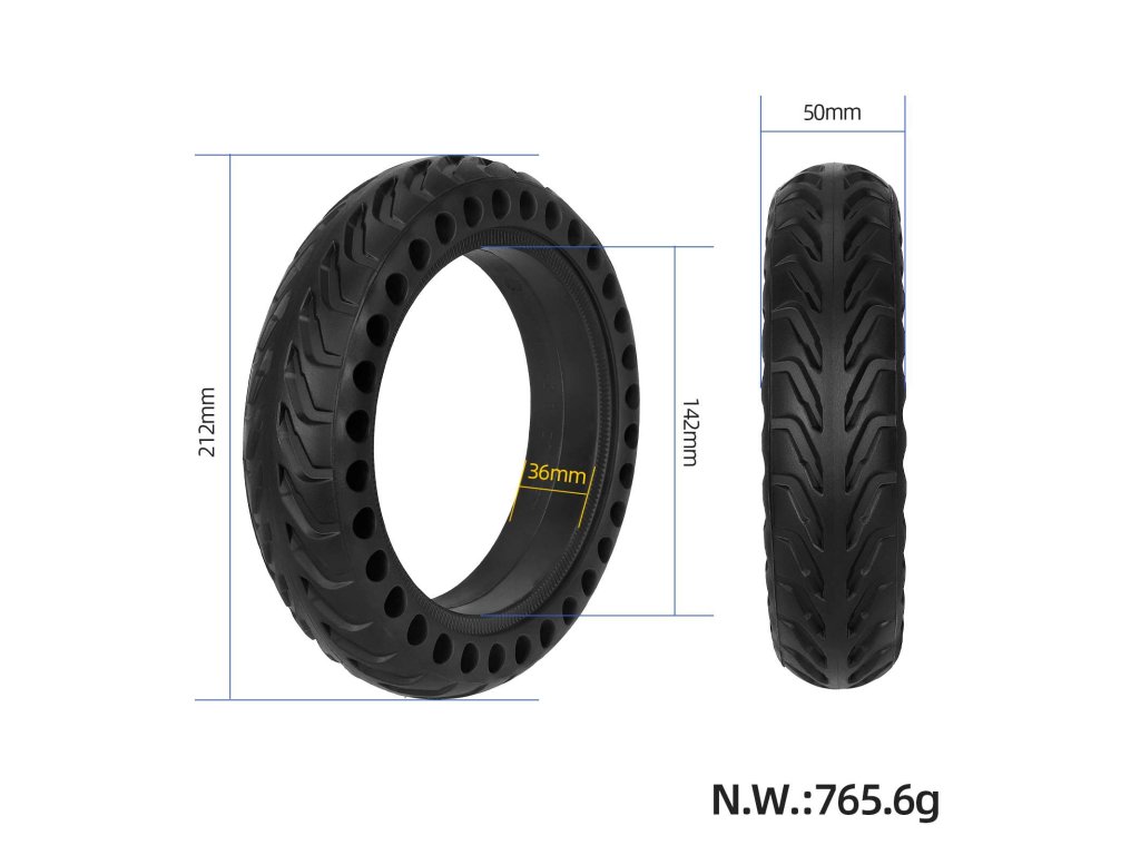Tato plná pneumatika o rozměru 8 1/2×2 je navržena pro jezdce, kteří chtějí odstranit riziko defektu a zároveň zachovat co nejvyšší komfort. Porézní (honeycomb) design zlepšuje pružnost pneumatiky a zajišťuje lepší tlumení nerovností.