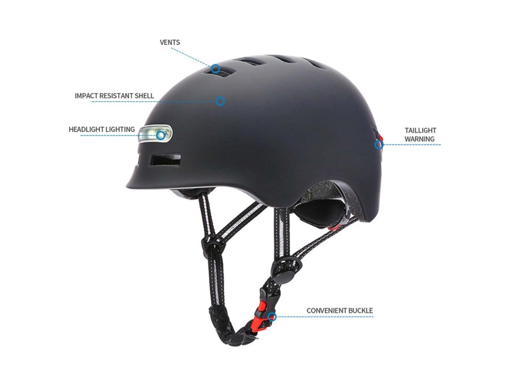 Černá přilba XL s LED osvětlením pro kolo a koloběžku