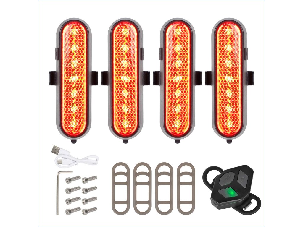 Tato sada obsahuje 4 červená LED směrová světla, která umožňují jasnou a srozumitelnou signalizaci směru jízdy. Díky dálkovému ovládání může jezdec bezpečně zapínat směrovky bez nutnosti puštění řídítek.