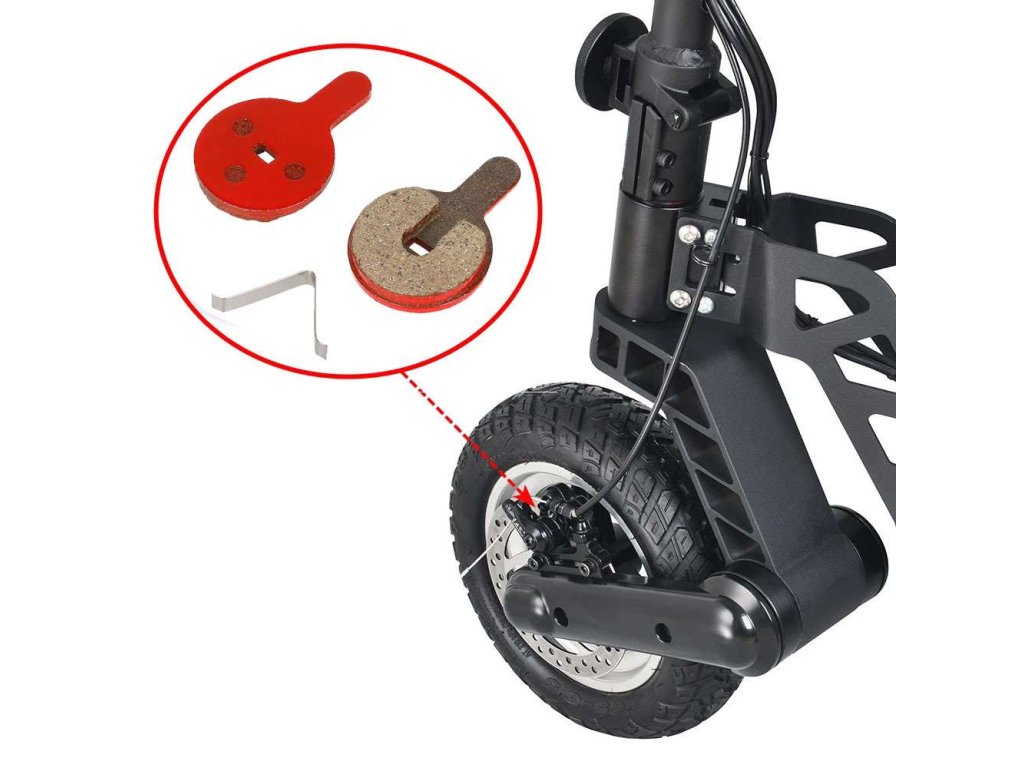 Celokovové brzdové destičky určené pro lankem ovládané (mechanické) kotoučové brzdy elektrických koloběžek a kol. Vhodné jako náhradní díl pro Kugoo M4, M2 Pro a Segway Ninebot...