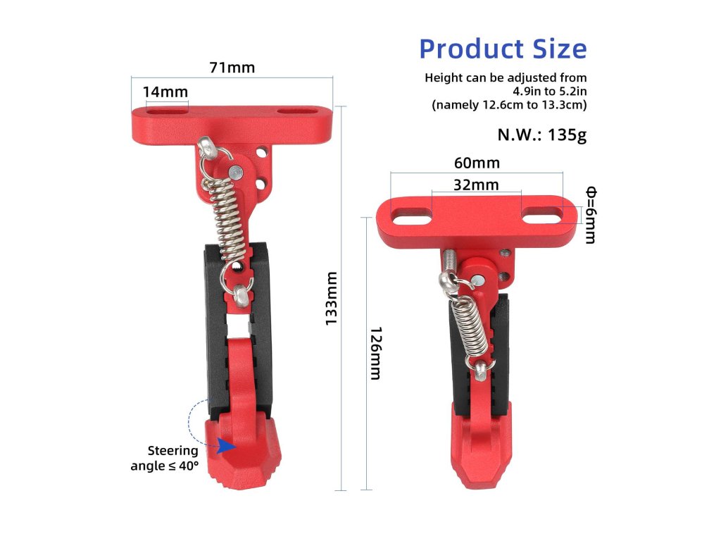 Červený nastavitelný stojan (kickstand) je praktický a odolný doplněk určený pro elektrické koloběžky F série a Xiaomi 4 série . Umožňuje jednoduché a stabilní postavení...