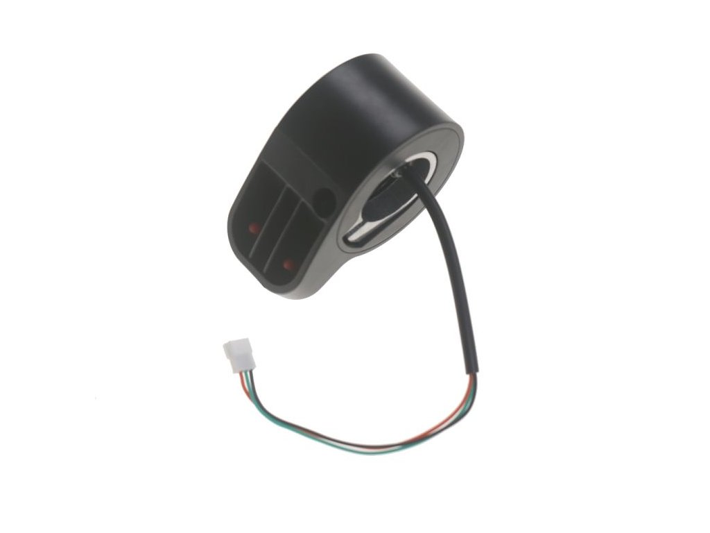 Tvar akcelerátoru je navržen pro přirozené ovládání palcem bez zbytečného namáhání ruky. Zvyšuje komfort zejména při delších jízdách.