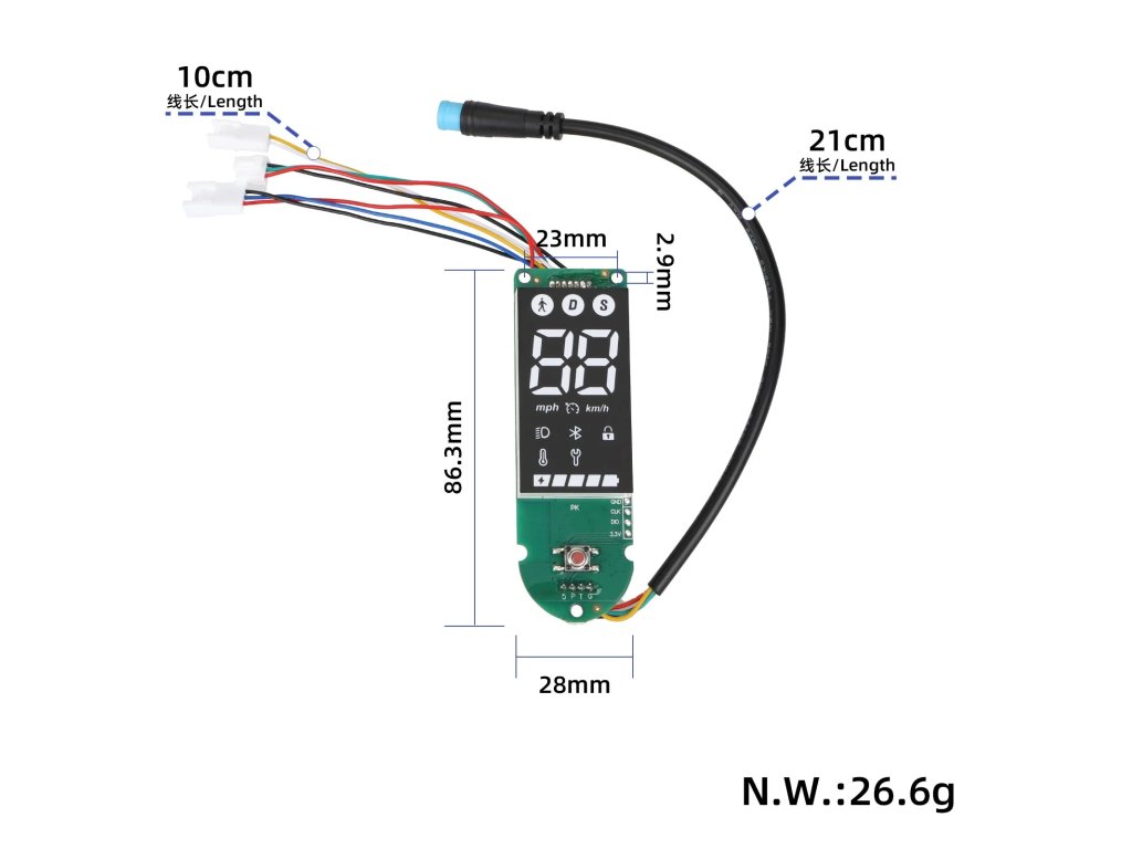 Bluetooth řídící deska – dashboard určený pro elektrickou koloběžku Xiaomi M365 Pro. Slouží jako zobrazovací a komunikační modul s Bluetooth připojením, vhodný i jako upgrade...