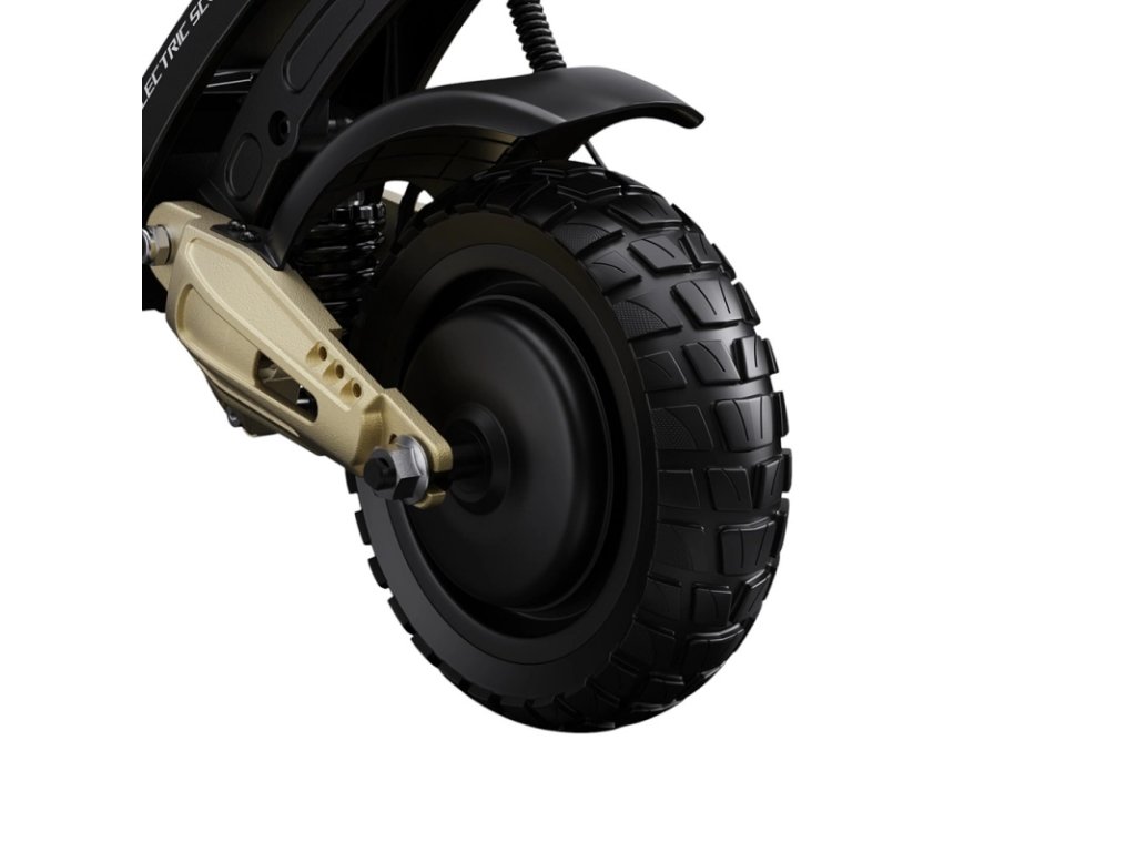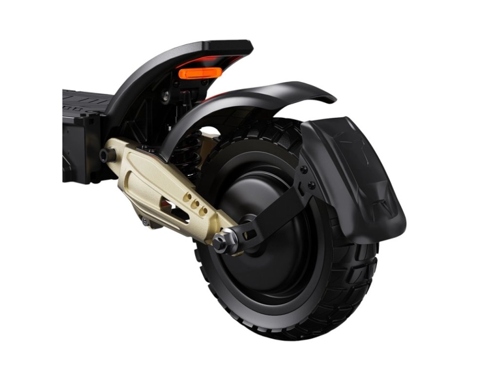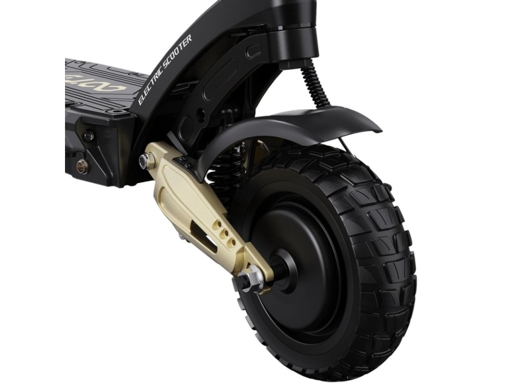 Pro bezpečnou jízdu je koloběžka vybavena předními a zadními hydraulickými brzdami s brzdovými kotouči o velikosti 140 mm. O komfort jízdy se stará dvojitý systém odpružení – kombinace hydraulického a pružinového tlumiče, který snižuje nárazy a zvyšuje stabilitu.