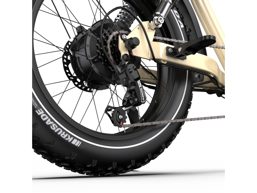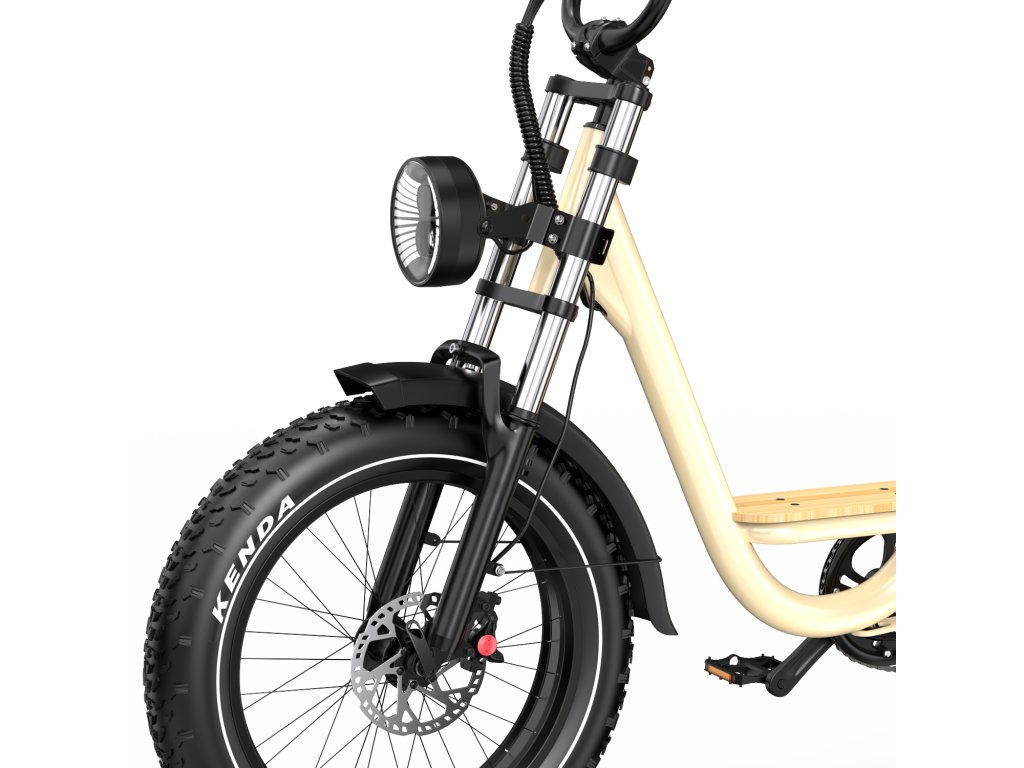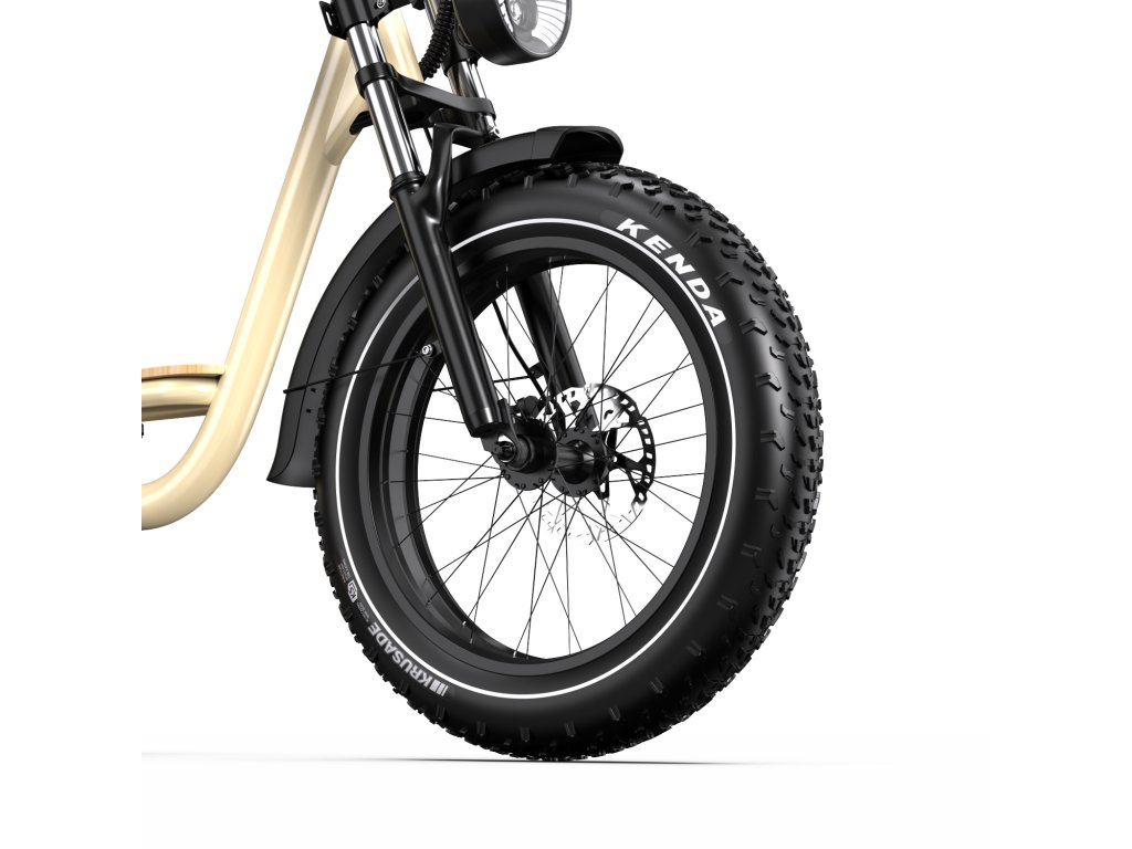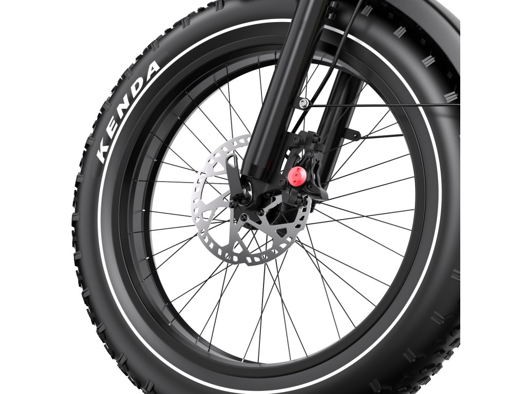 Toto kolo je vybaveno 20palcovými pneumatikami Kenda o rozměru 4,0 palce a 30TPI, které poskytují vynikající trakci a stabilitu na různých površích. Pneumatiky jsou vybaveny reflexními pruhy, což zvyšuje bezpečnost při jízdě za snížené viditelnosti. Plastové přední a zadní plné blatníky chrání jezdce před blátem a vodou.