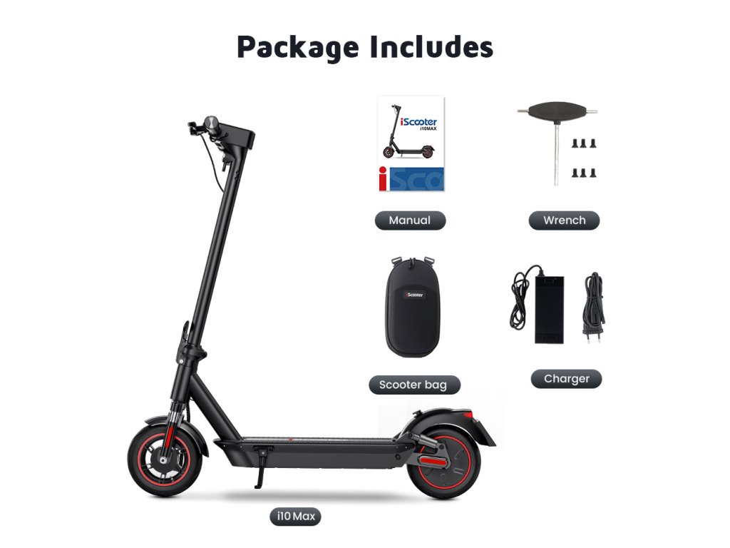 Koloběžka iScooter i9 Max je vybavena 10Ah baterií, která poskytuje dojezd až 35 km (22 mil) s dobou nabíjení 4 až 6 hodin. Zadní motor s výkonem 500W umožňuje dosáhnout maximální rychlosti 35 km/h (22 mil/h) a nabízí tři režimy výkonu pro různé jízdní podmínky.