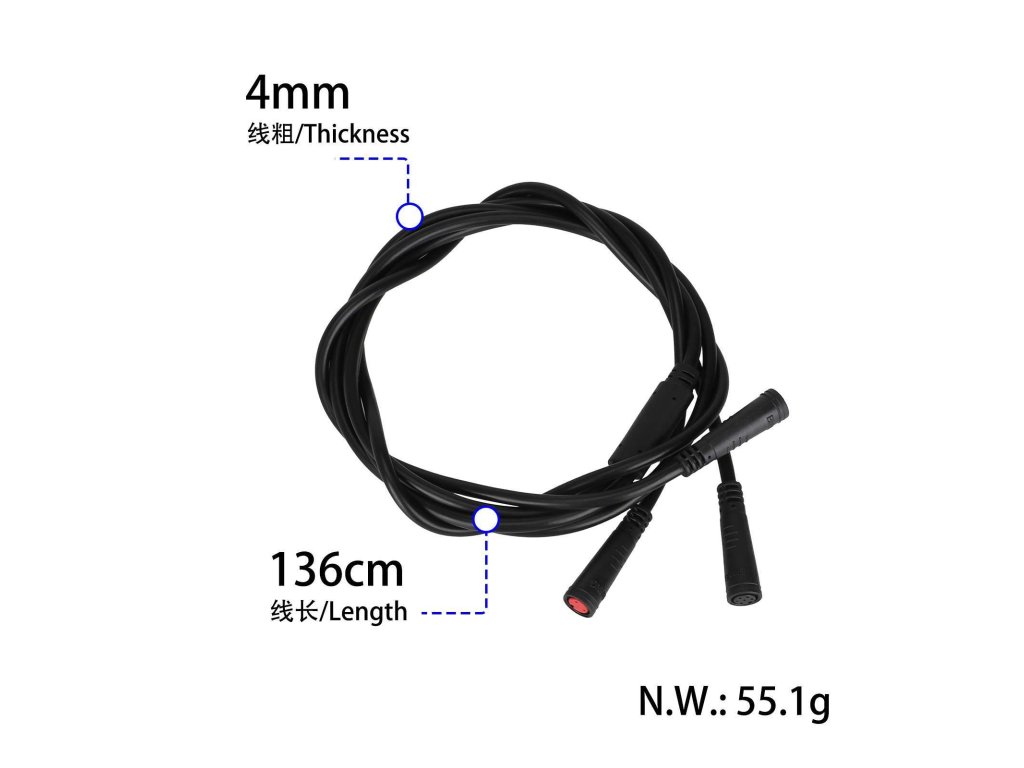Díky délce 136 cm a tloušťce 4 mm je kabel dostatečně flexibilní pro snadnou instalaci i vedení uvnitř konstrukce koloběžky. Odolává ohýbání a běžnému opotřebování. Hmotnost 55,1 g zaručuje nízkou zátěž.
