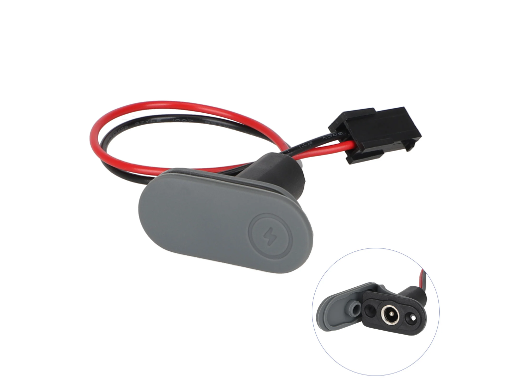 Náhradní nabíjecí konektor DC 5.5×2.1 mm určený pro elektrické koloběžky a e-biky. Slouží jako panelový konektor pro připojení nabíječky k baterii vozidla.