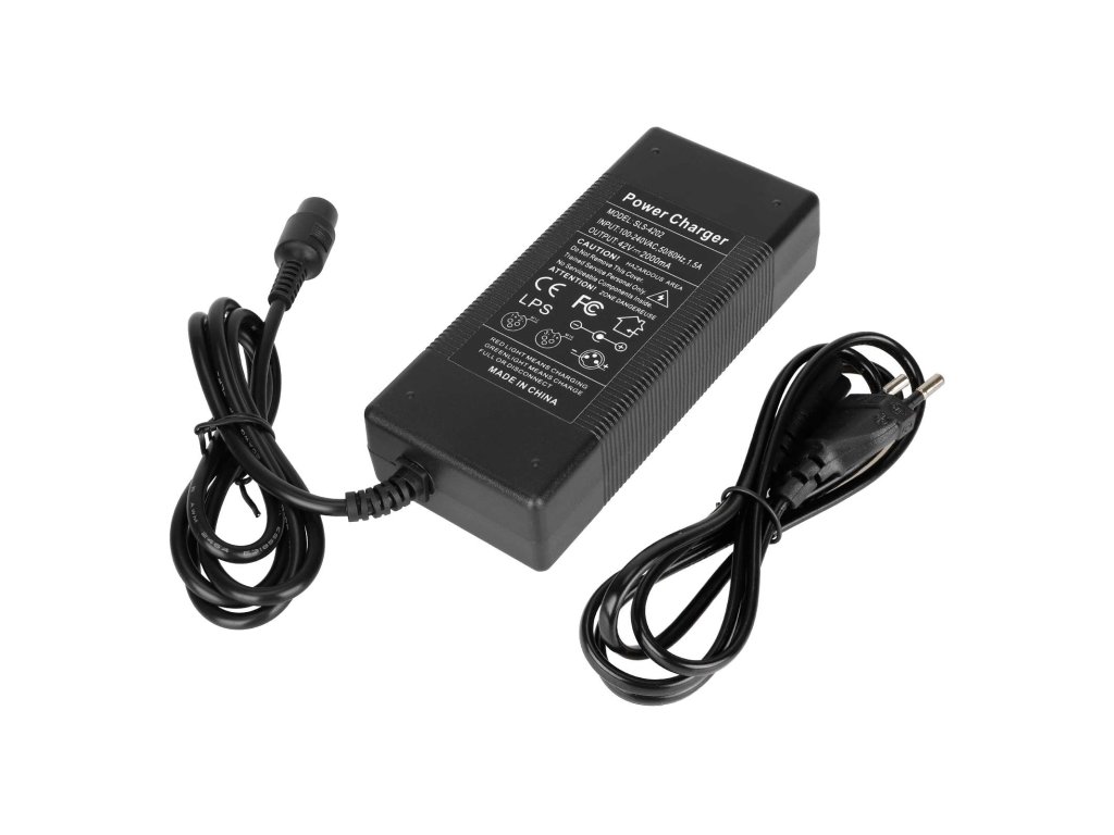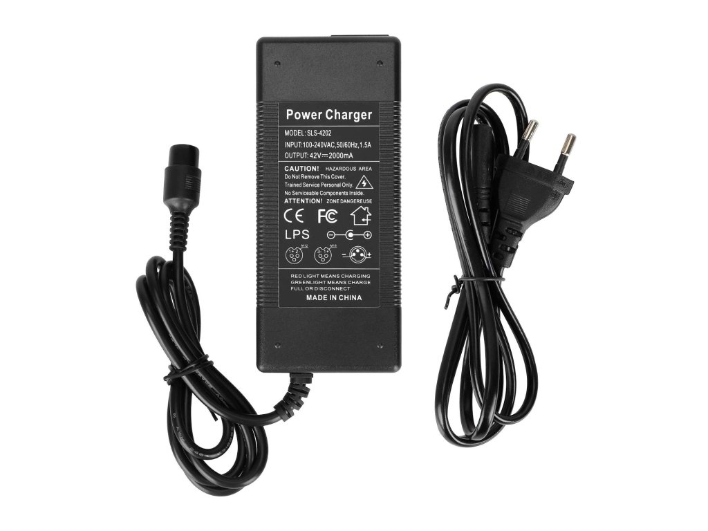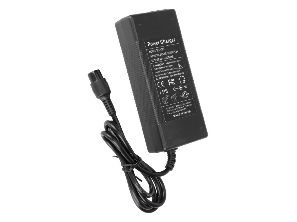 Univerzální 42V nabíječka pro elektrické koloběžky Xiaomi M365 a Ninebot s evropskou zástrčkou. Zajišťuje stabilní, bezpečné a spolehlivé nabíjení baterie.