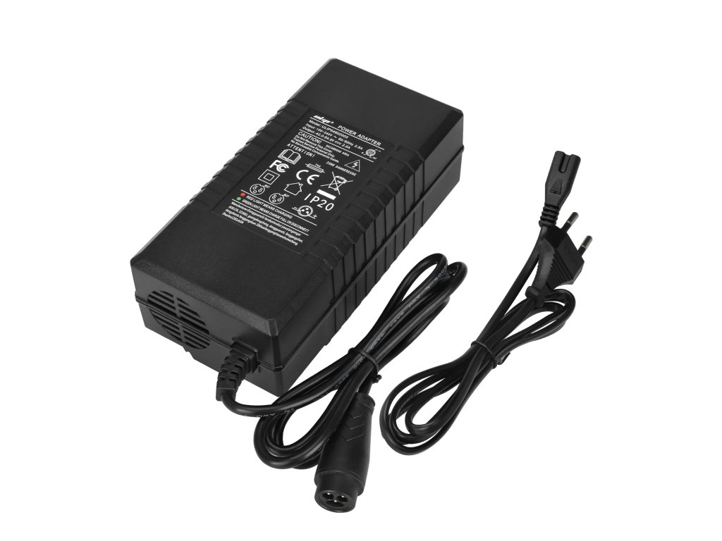 Univerzální nabíječka 42V 2A s konektorem DC2.1 a evropskou zástrčkou, vhodná pro mnoho elektrických koloběžek. Poskytuje stabilní, bezpečné a efektivní nabíjení baterie.