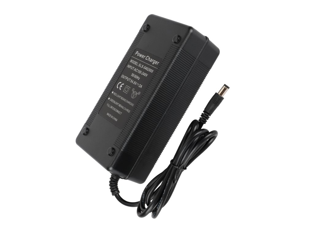 Tato nabíječka je určena pro elektrické koloběžky využívající 54.6V nabíjecí systém (48V baterie). Konektor DC2.1 zajišťuje stabilní připojení a bezpečný přenos energie. Nabíječka je vybavena ochranou proti zkratu, přetížení a přehřátí.