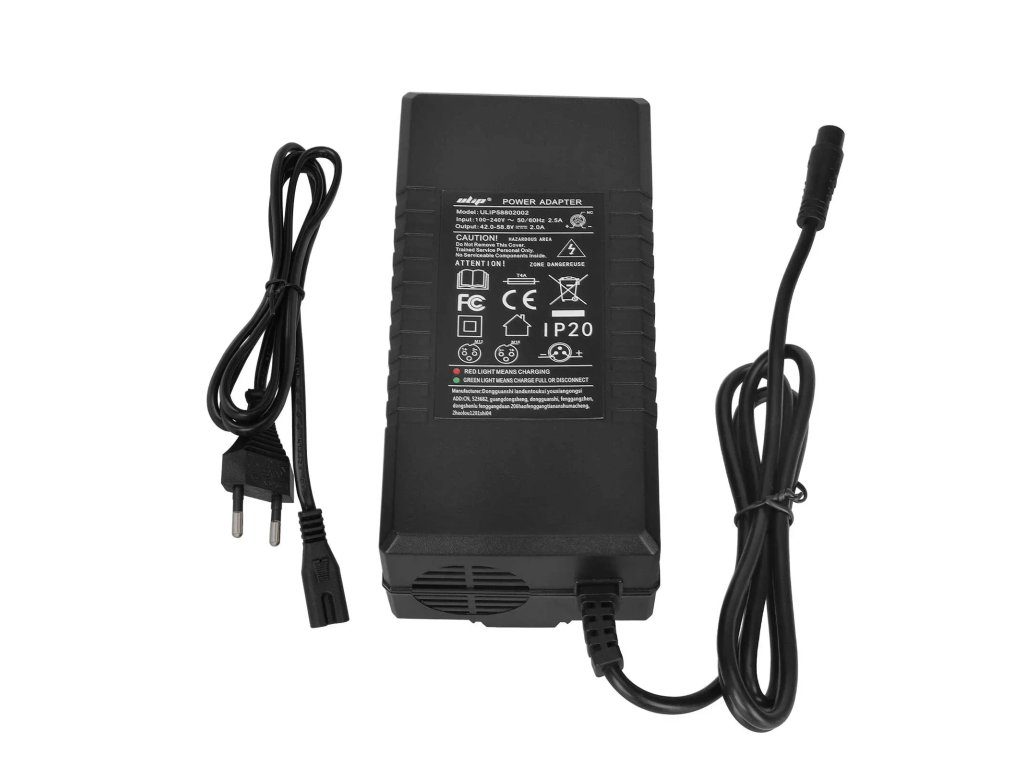 Nabíječka 54,6V/2A určená pro 48V (13S) lithiové baterie , vybavená MI (Xiaomi typ) konektorem , aktivním chlazením ventilátorem a EU zástrčkou. Vhodná pro elektrické koloběžky...