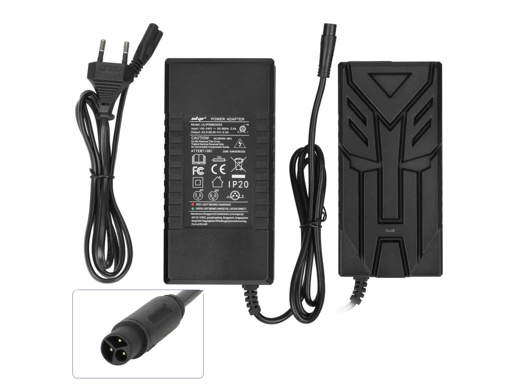 Kvalitní nabíječka 54,6 V/2 A s dutým konektorem a evropskou zástrčkou určená pro elektrické koloběžky Xiaomi. Zajišťuje stabilní, bezpečné a efektivní nabíjení 48 V lithiových...