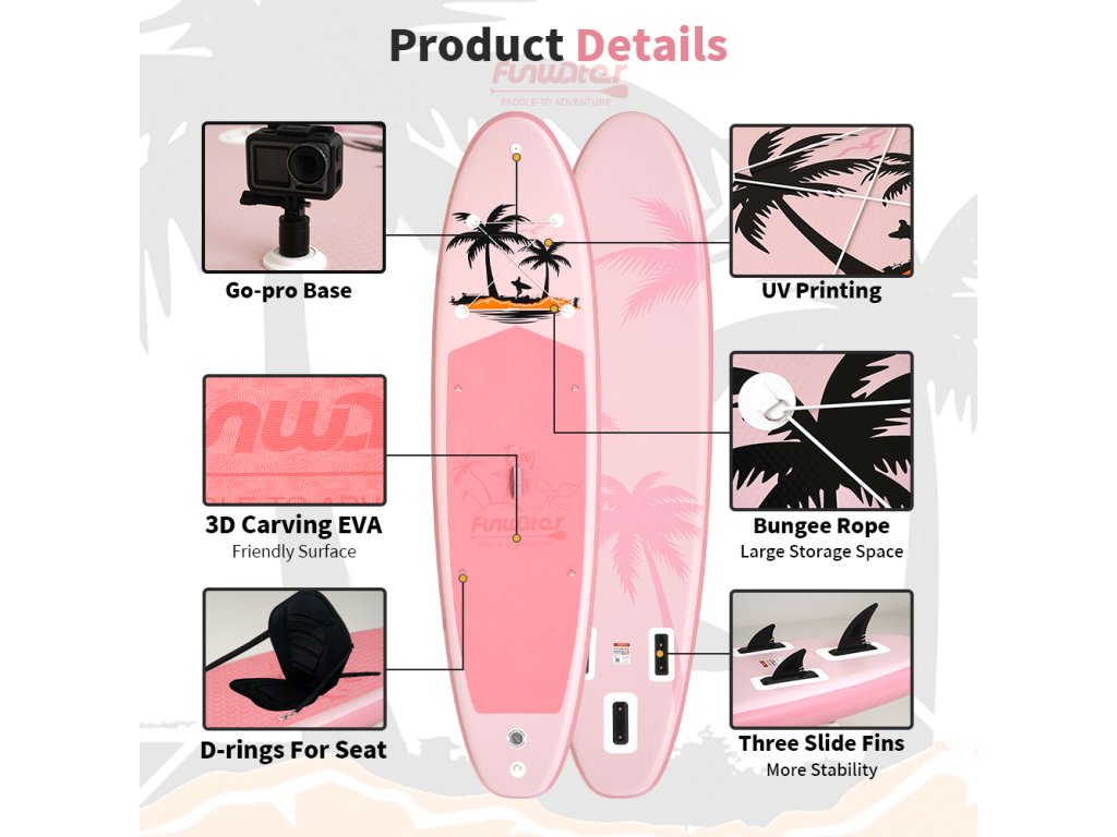Objevte krásu a svobodu paddleboardingu s nafukovacím paddleboardem FunWater PinkPlam . Tento stylový model s růžovým designem vyniká nejen vizuálně, ale také výkonem. Díky své konstrukci a šířce nabízí vynikající stabilitu, což z něj činí skvělou volbu pro začátečníky i pokročilé jezdce. Ať už se chcete klidně plavit po jezeře nebo si zacvičit jógu na vodě, tento paddleboard vás nezklame.