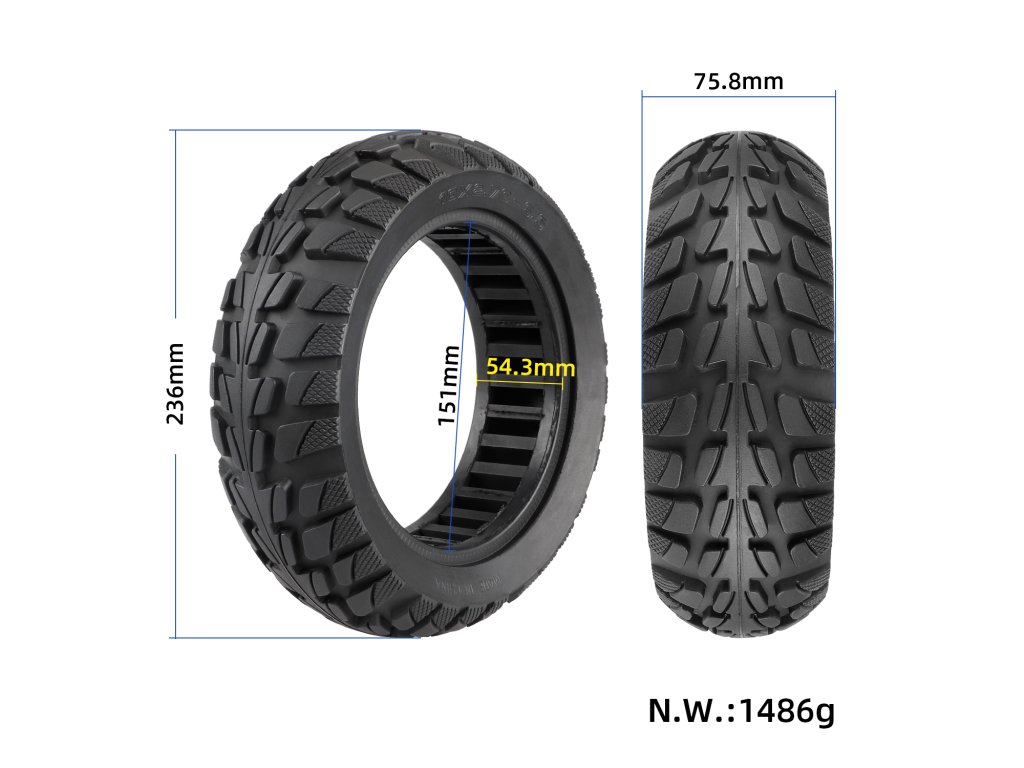 Offroad bezdušová plná pneumatika 10×2.7–6.5 s vnitřními otvory