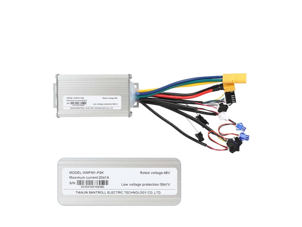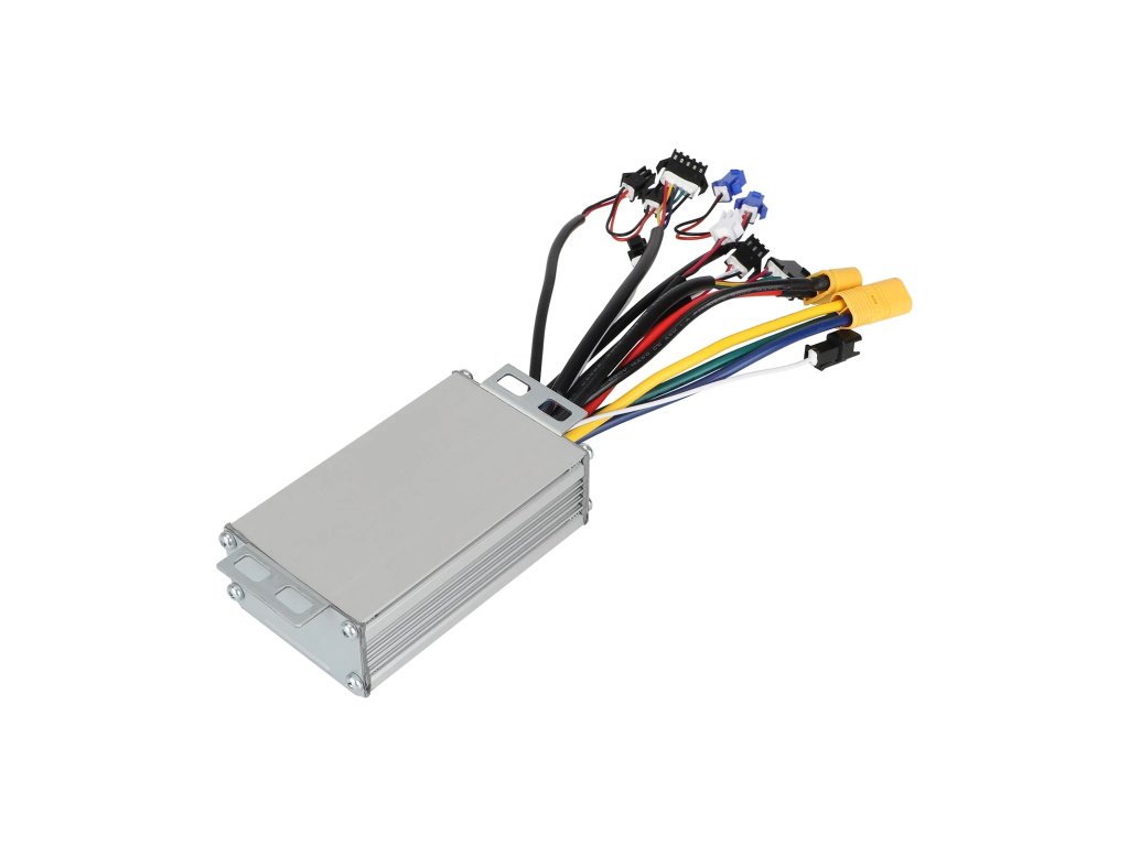 Řídící jednotka pracuje s napětím 48V a proudem 20A, což zajišťuje plynulé zrychlení a efektivní využití výkonu motoru.