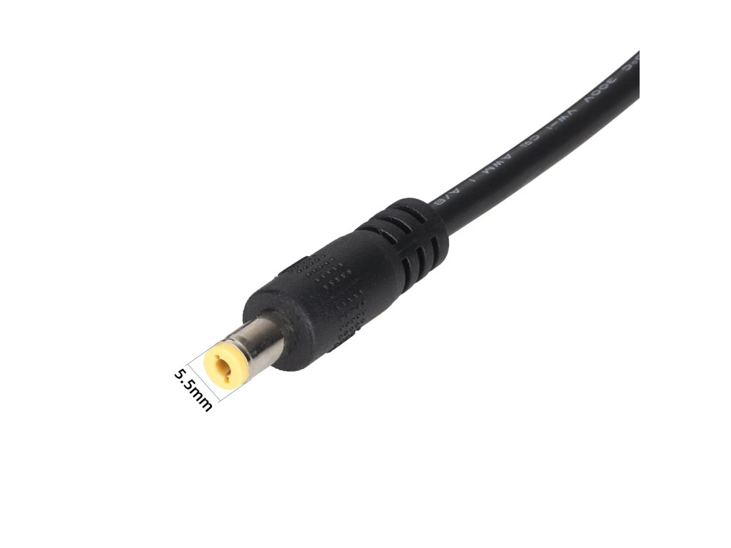 Standardní DC 2.1 konektor zajišťuje pevné připojení, EU zástrčka umožňuje okamžité použití bez redukce.
