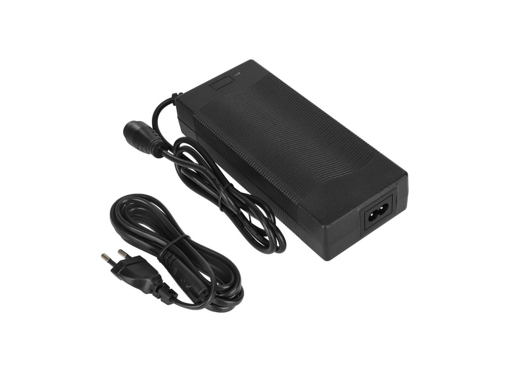 Výkonná nabíječka 54.6V 2A s konektorem DC2.1 a evropským standardem zásuvky. Vhodná pro elektrické koloběžky s 48V baterií, nabízí rychlé a bezpečné nabíjení.
