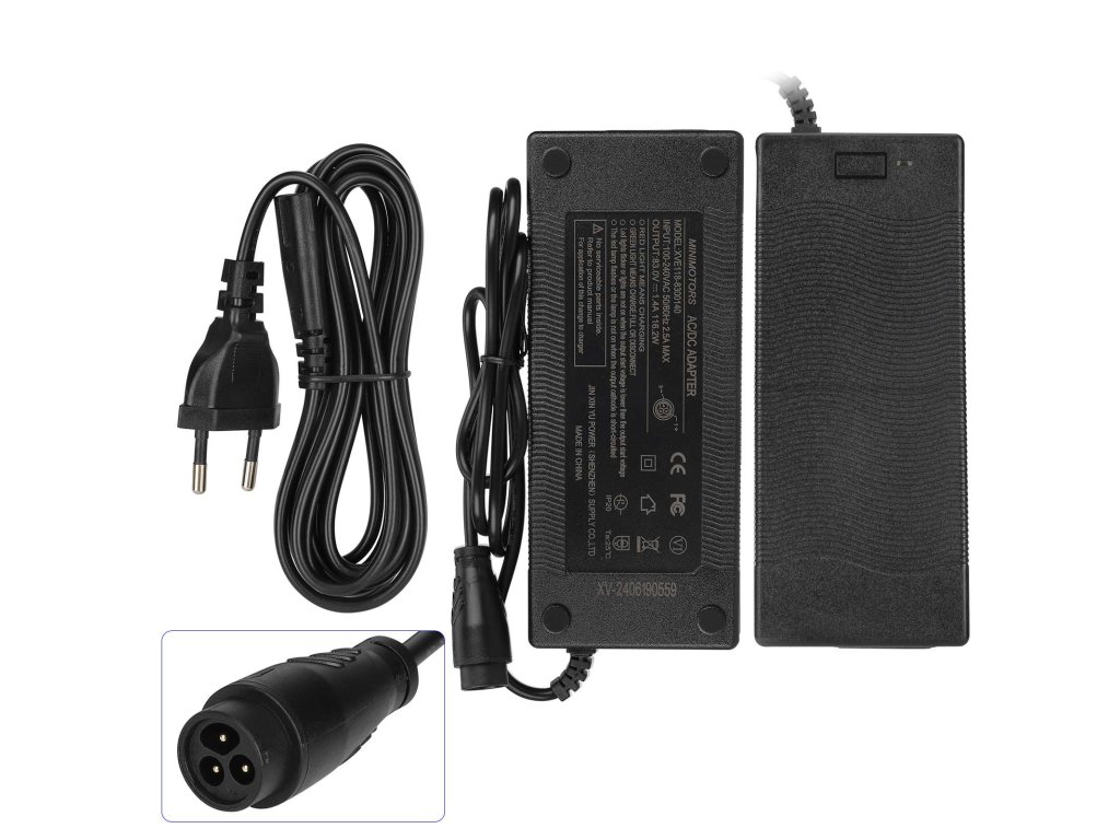 Náhradní nabíječka 54,6 V/2 A s velkým konektorem LP16-3P (Big Eight Ming) a evropskou zástrčkou. Určena pro elektrické koloběžky a zařízení s 48 V Li-ion baterií. Zajišťuje...
