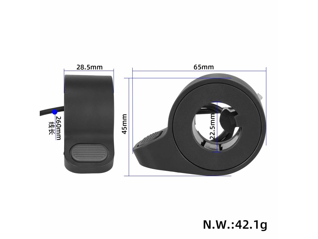 Prstový (finger) akcelerátor s Hall senzorem určený pro elektrické koloběžky a kola. Zajišťuje plynulou a přesnou regulaci rychlosti, pohodlné ovládání a spolehlivou odezvu při...