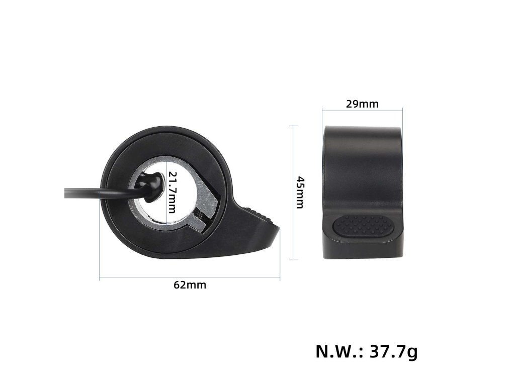 Tento palcový plyn umožňuje přesné a plynulé dávkování výkonu motoru snadným pohybem palce. Ergonomický tvar zvyšuje komfort ovládání zejména při delších jízdách.