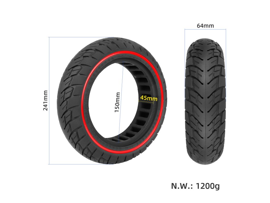 Plná honeycomb pneumatika 10×2.5 s červeným kruhem (45 mm drážka)