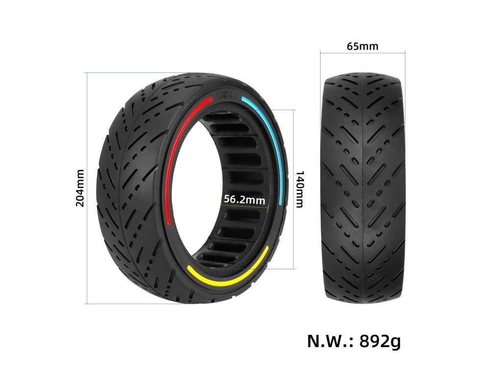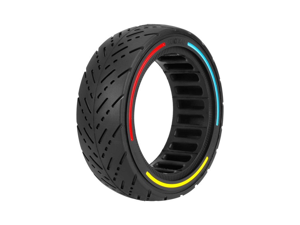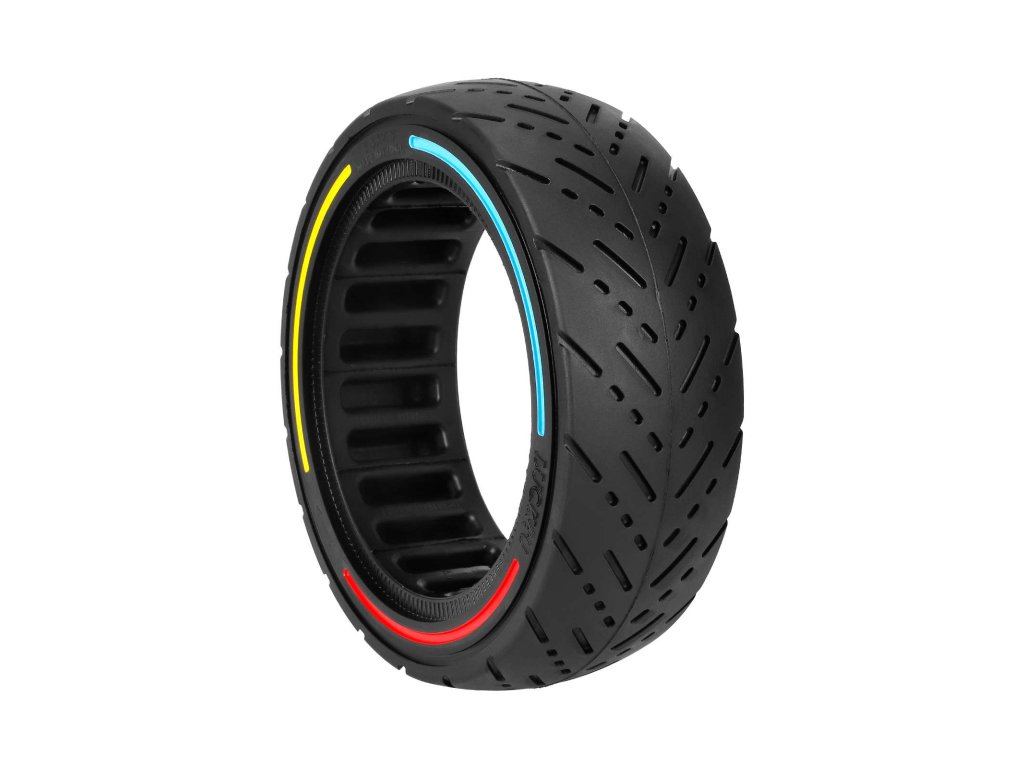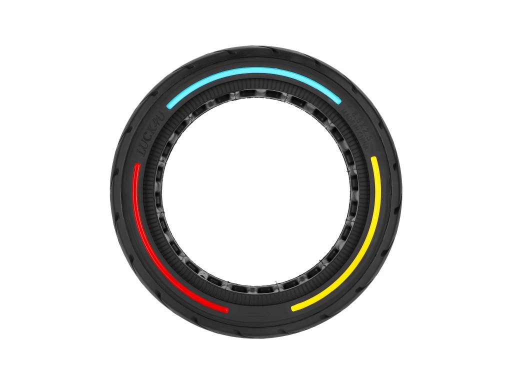 Plná (solid) pneumatika 10×2.125/250×54 s designovými barevnými kruhy určená pro elektrické koloběžky Ninebot F20, F25, F30, F40 a Xiaomi 4, Xiaomi 4 Lite 2nd Gen. Bezdušové...