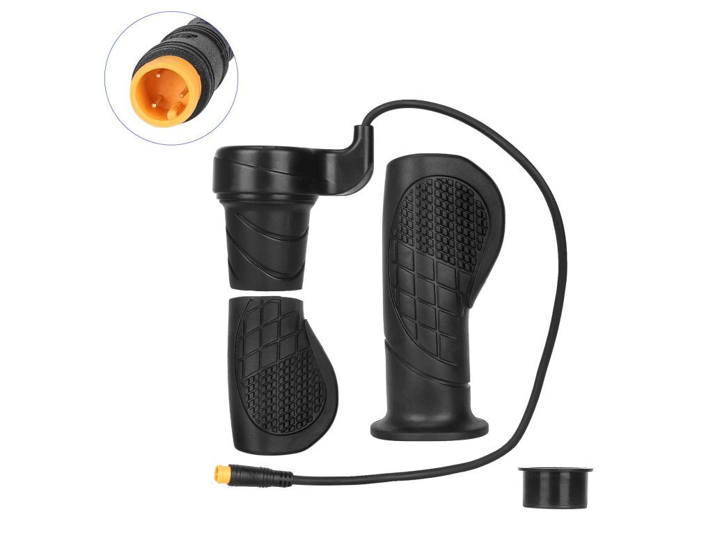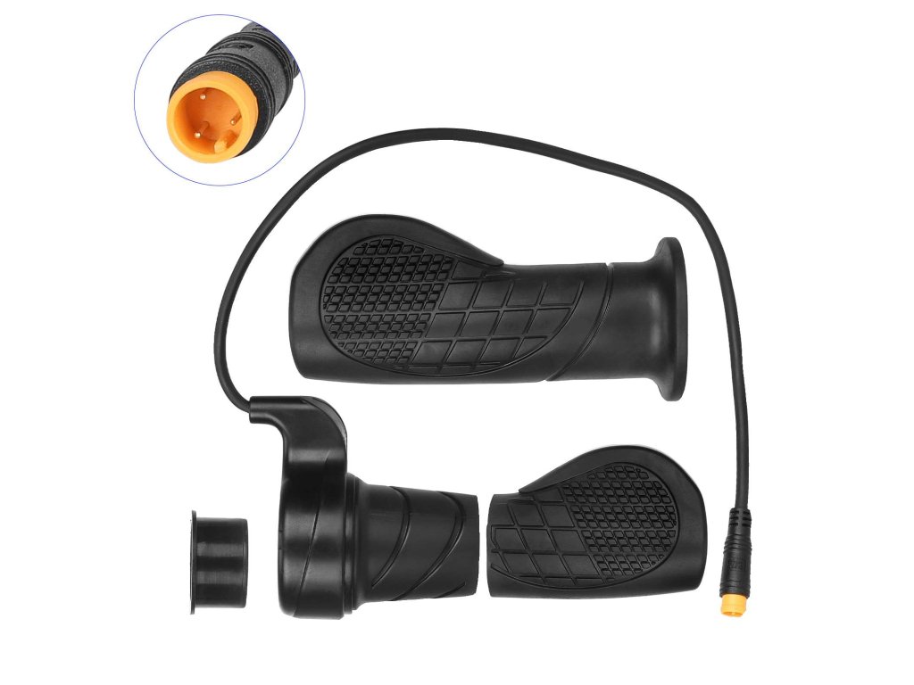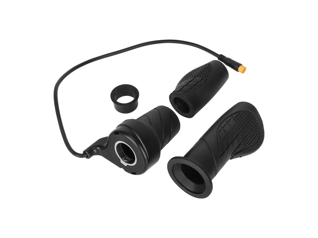 Polootáčkový mechanismus umožňuje přesné a plynulé dávkování výkonu pouhým pootočením rukojeti. Ovládání je přirozené a stabilní i při delší jízdě.