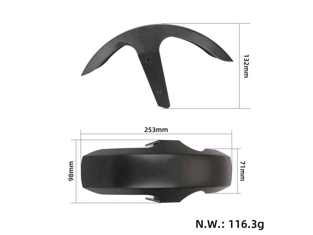 Náhradní přední blatník pro elektrické koloběžky Xiaomi Electric Scooter 5 a Xiaomi 5 Pro. Chrání jezdce před vodou, prachem a nečistotami z předního kola.