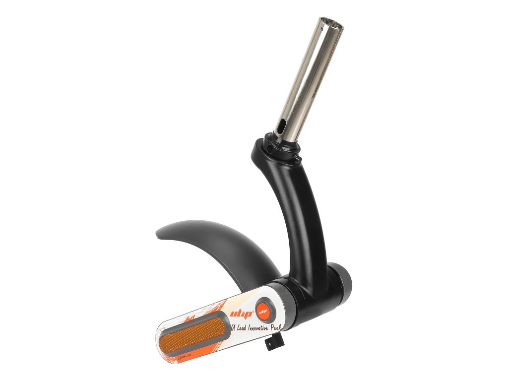 Speciální L-shaped konstrukce zlepšuje rozložení sil při nárazech, čímž snižuje přenos vibrací do řídítek. Koloběžka se chová plynuleji, stabilněji a jezdec je méně unavený i při delších trasách.