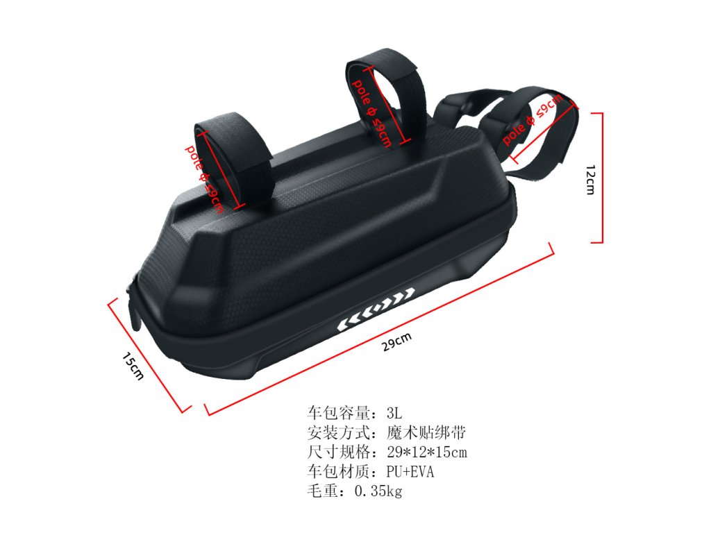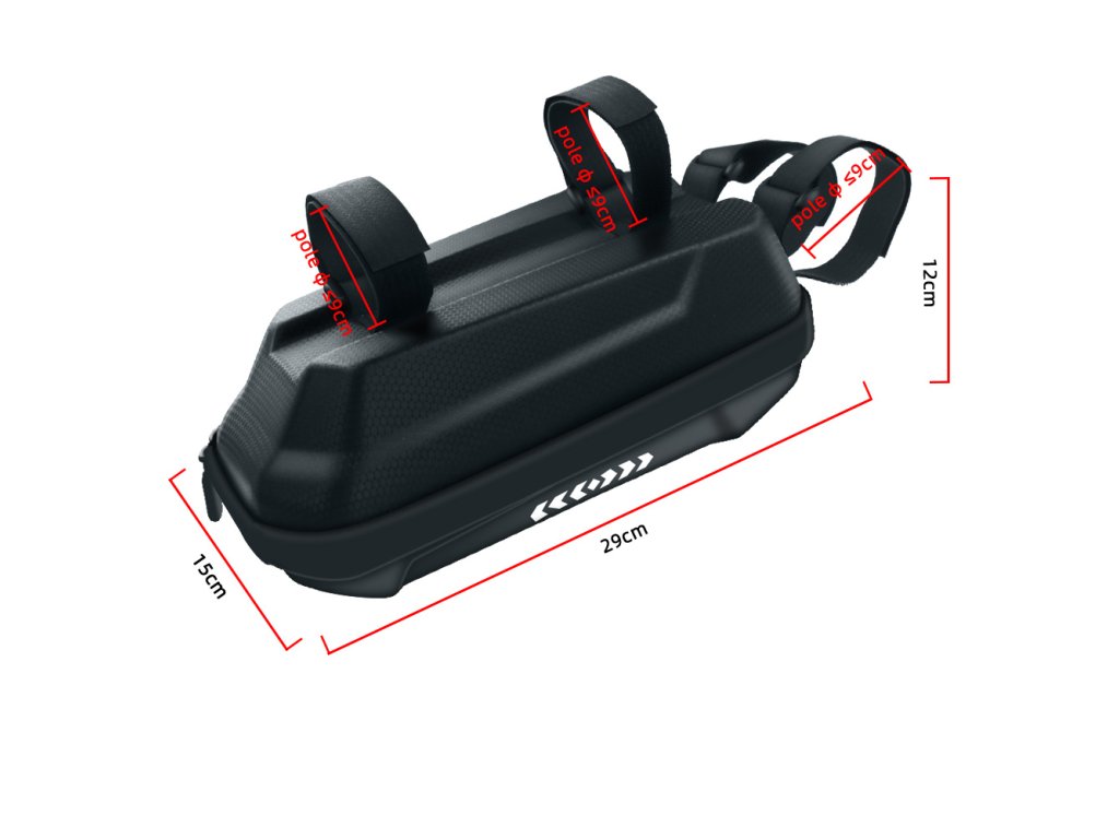 Univerzální přední taška o objemu 2 l vyrobená z kombinace PU a EVA materiálu. Plně vodotěsné provedení s tvrdou skořepinou, vhodná pro kola, elektrokola a elektrické koloběžky....