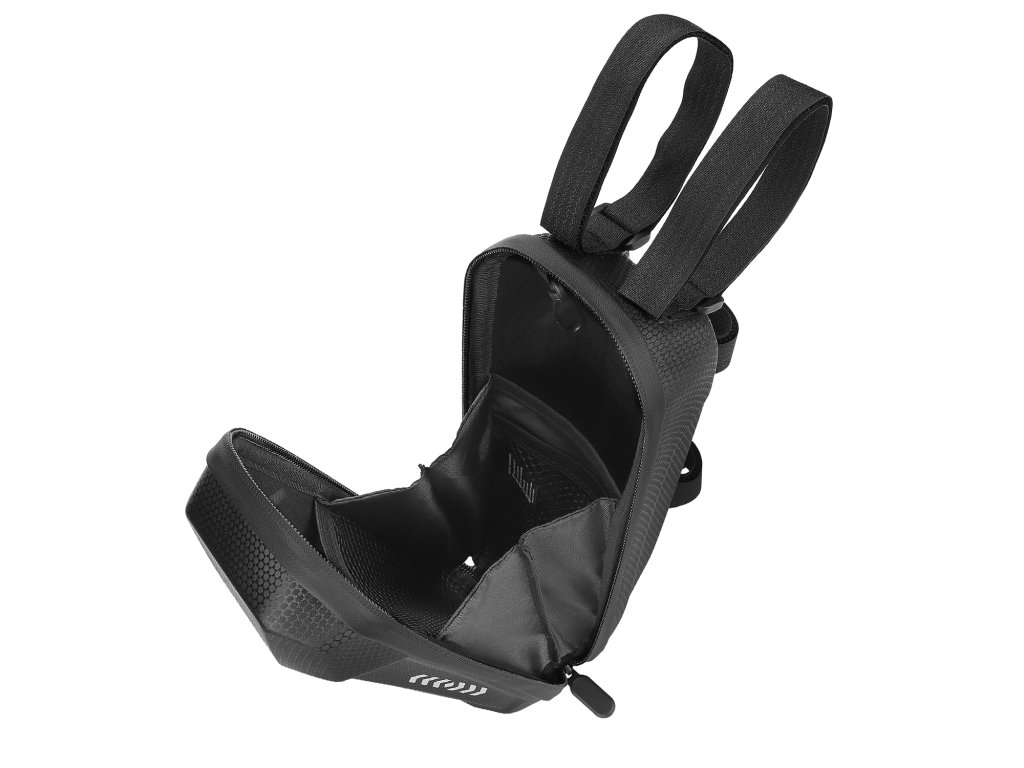 Tato přední taška o objemu 2 litry je navržena pro každodenní používání na kolech, elektrokolech a elektrických koloběžkách. Díky kompaktním rozměrům poskytuje dostatek prostoru pro uložení drobných osobních věcí, aniž by překážela při jízdě.