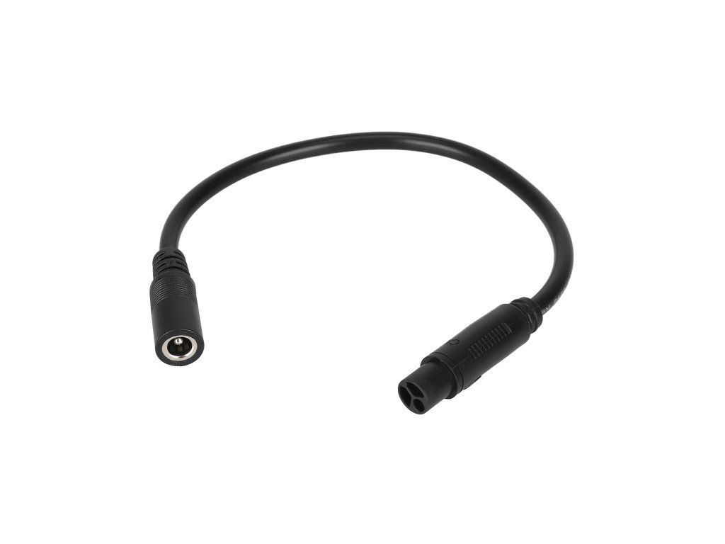 Adaptérový kabel pro propojení DC konektoru 5.5×2.1 mm s velkým leteckým konektorem GX16 (3-pin). Určen pro nabíjení a napájení elektrických koloběžek, e-biků a bateriových...