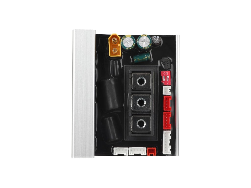 Řídící deska je centrem celé elektroniky koloběžky. Zpracovává signály z plynu, brzdy a senzorů a řídí výkon motoru i ostatní funkce.