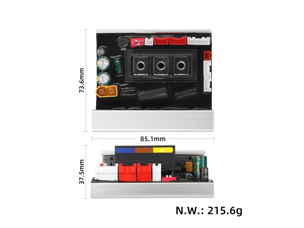 Controller je centrálním prvkem elektroniky koloběžky. Řídí výkon motoru, zpracovává signály ze snímačů a zajišťuje stabilní a bezpečný provoz.
