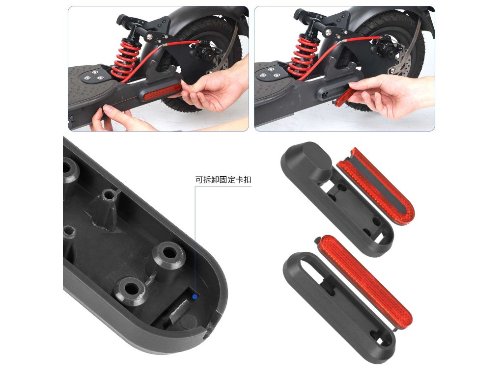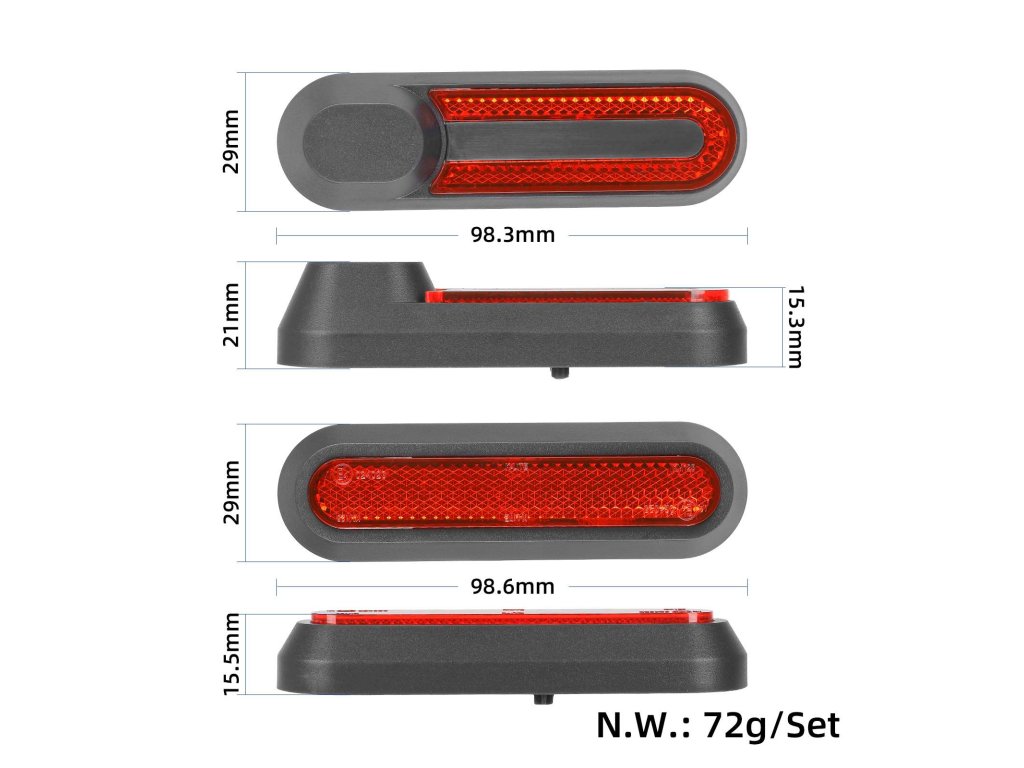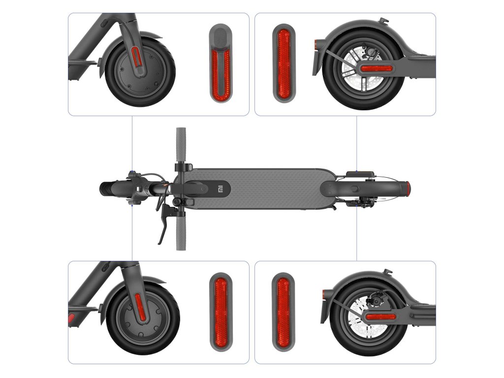 Kryty kol jsou vybaveny červenými reflexními pásy, které zvyšují viditelnost koloběžky při zhoršených světelných podmínkách. Reflexní prvky pomáhají řidičům a ostatním účastníkům silničního provozu lépe vás zaregistrovat.