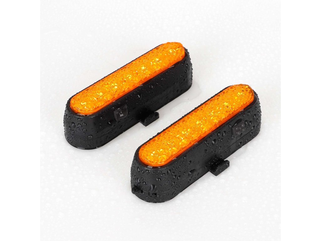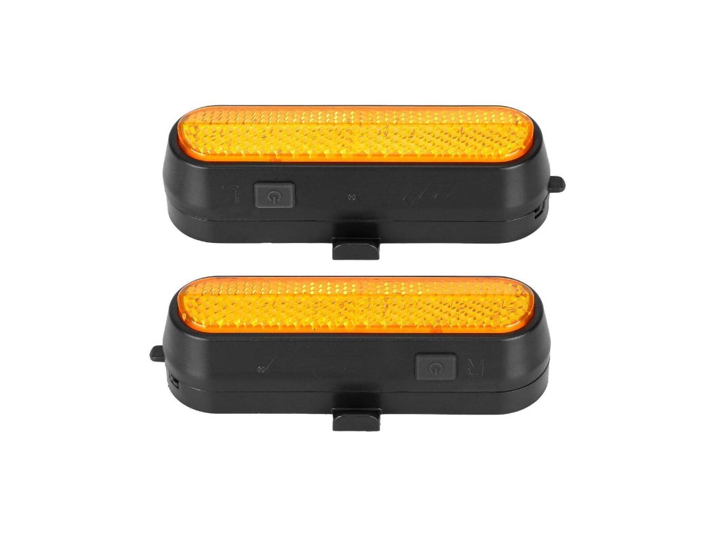Tato sada obsahuje 2 ks předních žlutých blinkrů a 1 ks zadního směrového světla , které spolu poskytují kompletní systém signalizace pro bezpečnou jízdu. Světla jsou vhodná pro téměř všechny koloběžky, kola a e-biky, díky univerzálnímu upevnění a flexibilnímu designu.