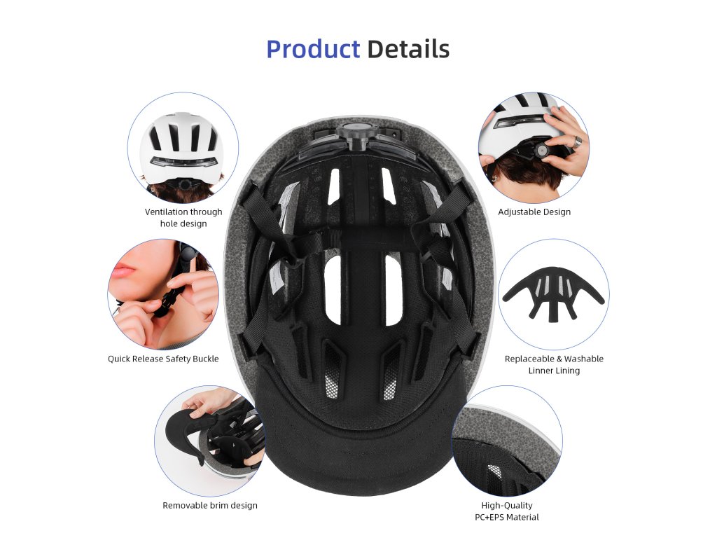 Tato inteligentní chytrá přilba v elegantním bílém provedení poskytuje maximální bezpečnost, viditelnost a komfort při jízdě na elektrické koloběžce, kole či e-biku. Díky pokročilému LED osvětlení, jasným směrovkám a praktickému dálkovému ovladači je ideální pro jízdu ve městě i mimo něj. Moderní design a kvalitní zpracování zaručují spolehlivou ochranu a pohodlné nošení po celý den.