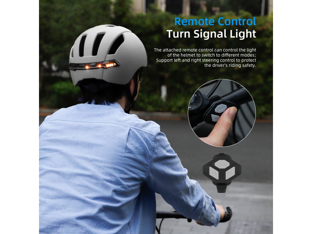 Helma obsahuje jasné žluté LED směrovky ovládané pohodlným bezdrátovým ovladačem, který jednoduše připevníš na řídítka koloběžky či kola. Ovladač nabízí tlačítka pro levý i pravý směr a tlačítko režimů. Signály jsou velmi dobře viditelné iv noci, což výrazně zvyšuje bezpečnost v provozu.