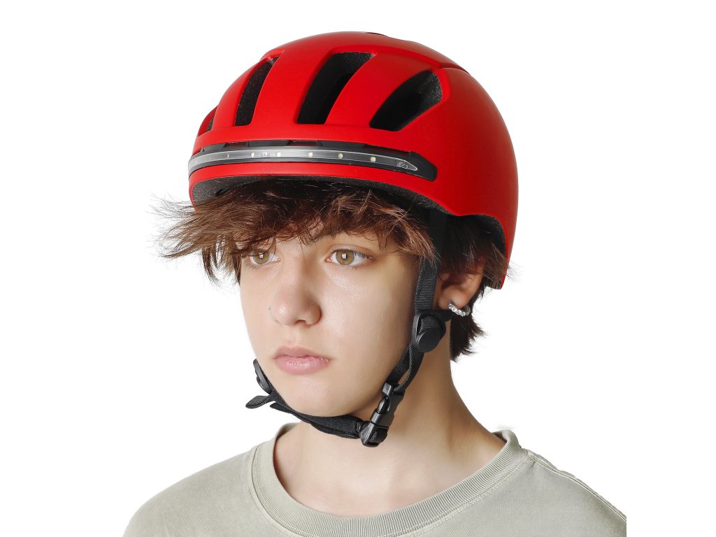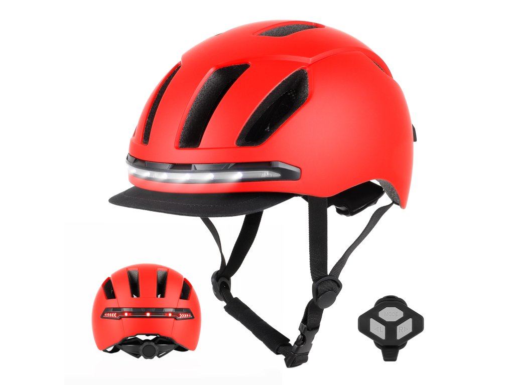 Smart přilba s LED směrovkami a dálkovým ovládáním – červená