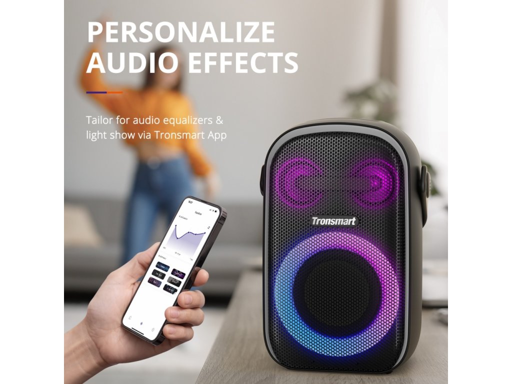 Hledáte dokonalý reproduktor, který si můžete přizpůsobit podle svých preferencí? Bezdrátový reproduktor Tronsmart Halo 110 bude pro vás ideální! Má výstupní výkon 60 W, který zaručuje hlasitý a čistý zvuk během večírků nebo setkání s přáteli. Navíc si budete moci jeho vzhled přizpůsobit situaci nebo své náladě pomocí 5 režimů podsvícení.