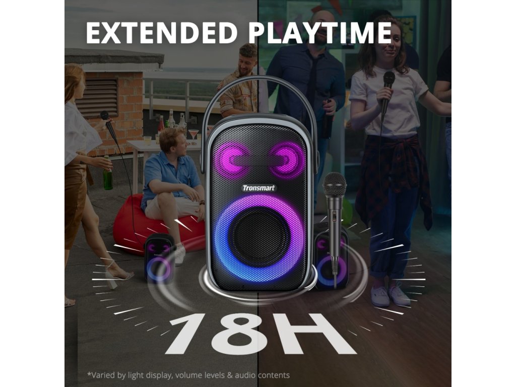 To, co reproduktor Tronsmart odlišuje, je jeho velká 12 000 mAh baterie. Ta poskytuje zařízení až 18 hodin provozu, takže se už nebudete muset omezovat! A co víc, pro ještě lepší stereo zvuk stačí spárovat 2 reproduktory dohromady. Vychutnejte si ničím nerušenou párty v rytmu největších hitů!