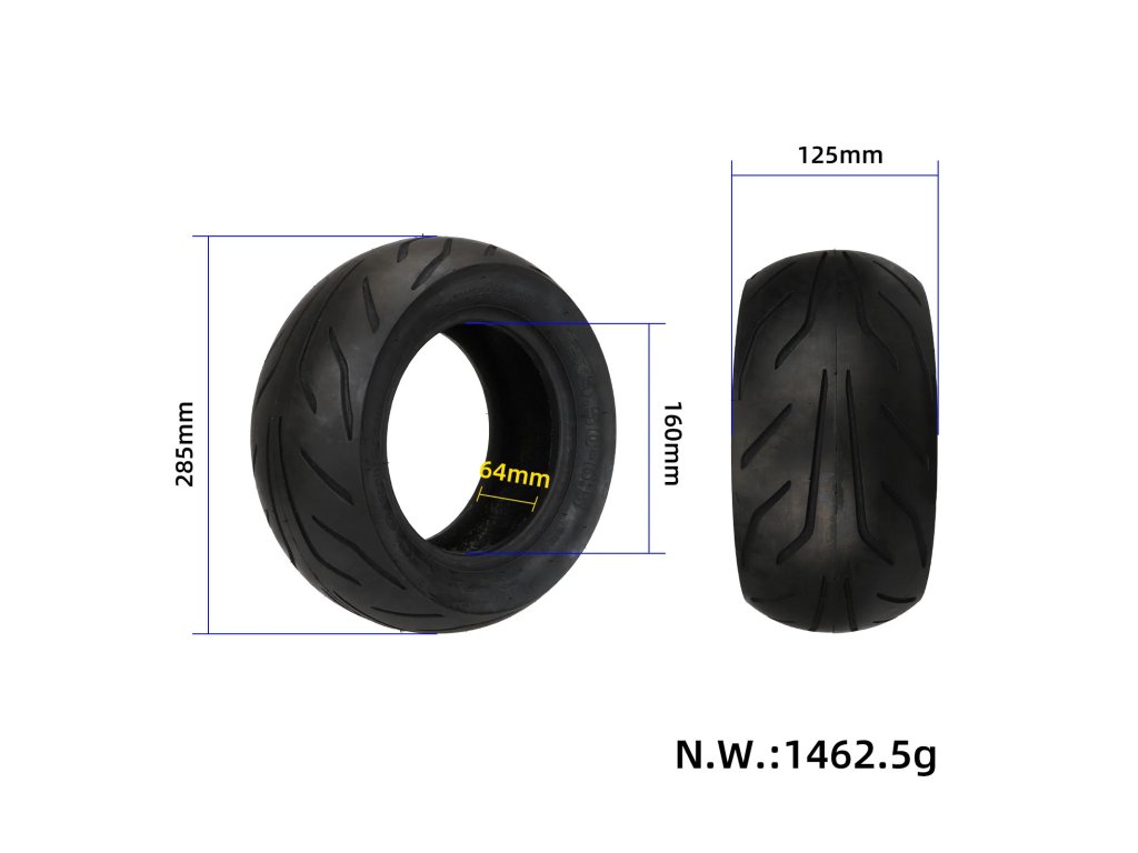 Široká bezdušová pneumatika 13x5.00-6.5 pro výkonné elektrické koloběžky s 13" motorovým kolem. Vhodná pro modely FLJ K6 a Ultron.