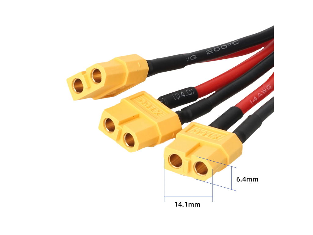 - Konektory: 1× XT60 samec → 3× XT60 samice