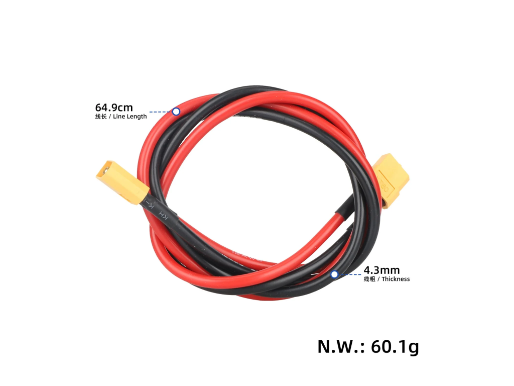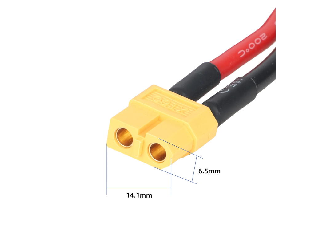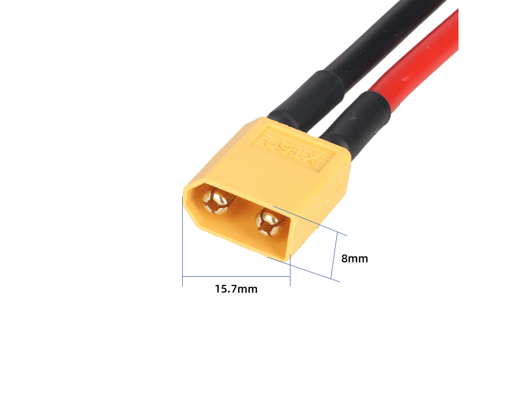 - Konektory: XT60 samec → XT60 samice