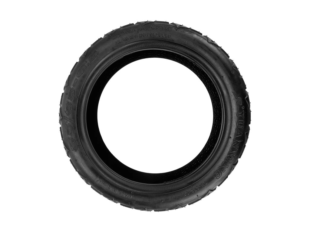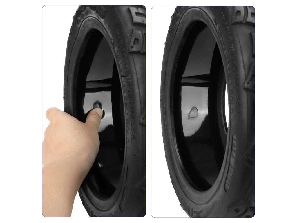 Odolná offroad plná pneumatika 10×2.7–6.5 s vnitřními tlumícími otvory, určená pro elektrické koloběžky. Bezdušové provedení eliminuje defekty a snižuje potřebu údržby.