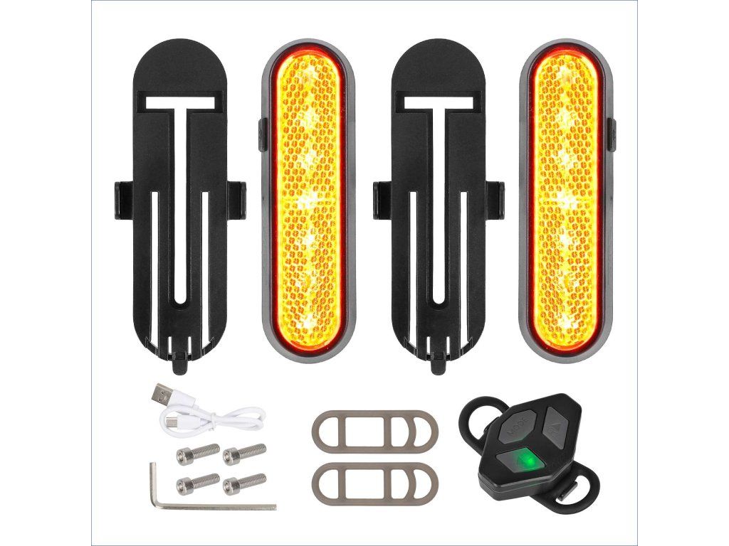 Sada 4 červených nabíjetelných LED směrových světel s dálkovým ovládáním, vhodná pro elektrické koloběžky, kola a e-biky. Vodotěsné provedení, vysoká svítivost a snadná montáž...