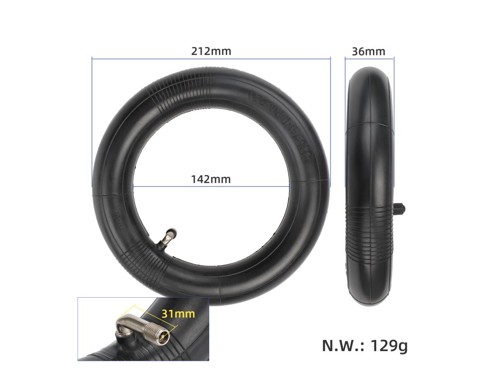 Duše 8 1/2×2 s vnějším úhlovým ventilem 45° určená pro elektrické koloběžky Xiaomi Mijia M365, Pro, Pro2 a 1S. Spolehlivá náhrada pro 8,5palcová kola s jednoduchým huštěním.